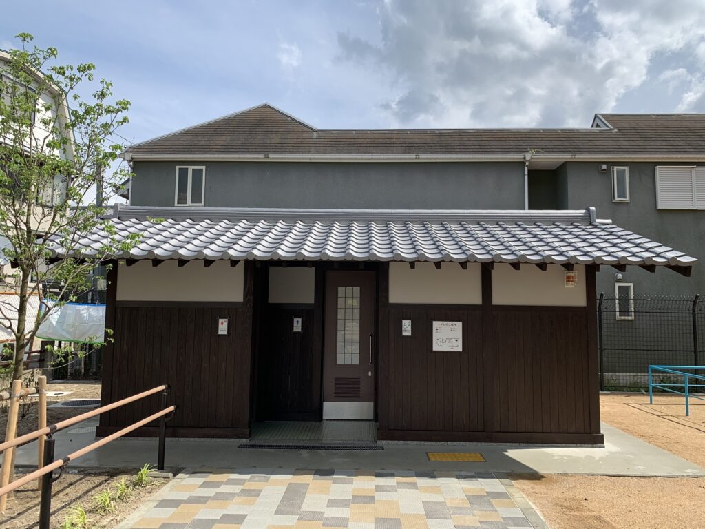 仕口や継手等、全て手刻みで行った純木製公衆便所を新築いたしました。京都府内産材「みやこ杣木」を使用し、伝統的な木組みの技術を駆使して、自然環境と調和する美しい公共施設を実現しました。職人の手による丁寧な仕事により、機能性と美しさを両立した建物となっています。