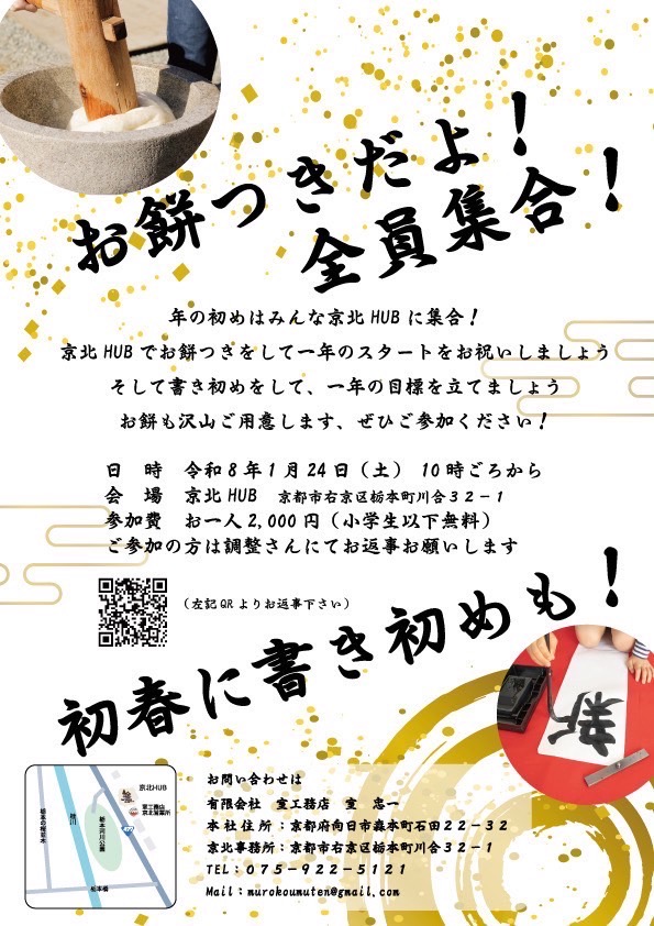 弊社の京北HUBでお餅つきを開催します! ご参加の方はお申込み下さい。お待ちしております♪ https://chouseisan.com/s?h=54b0d6e4a72e4610bfb04da1fed3d1ac&fbclid=PAdGRleAPcEZlleHRuA2FlbQIxMQBzcnRjBmFwcF9pZA8xMjQwMjQ1NzQyODc0MTQAAacM05j4_zj3jXymJu7mLADQ1IhYZUm0kp6a5fsTO2502w2sraej8tw14X7p_A_aem_uCASN7AHF_LZLU8QEprfbQ